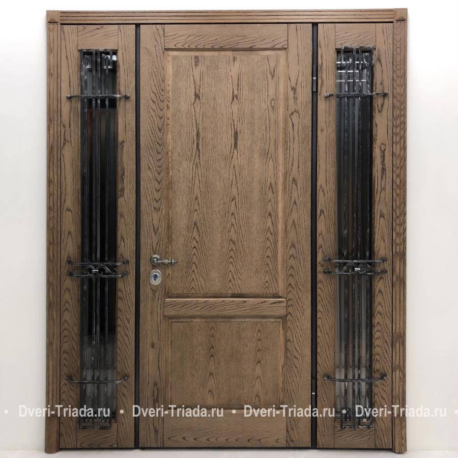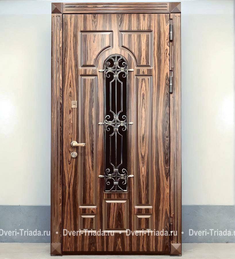 Остекленная утепленная термодверь с узкой решеткой (фрезерованные панели МДФ ПВХ) Арт-644